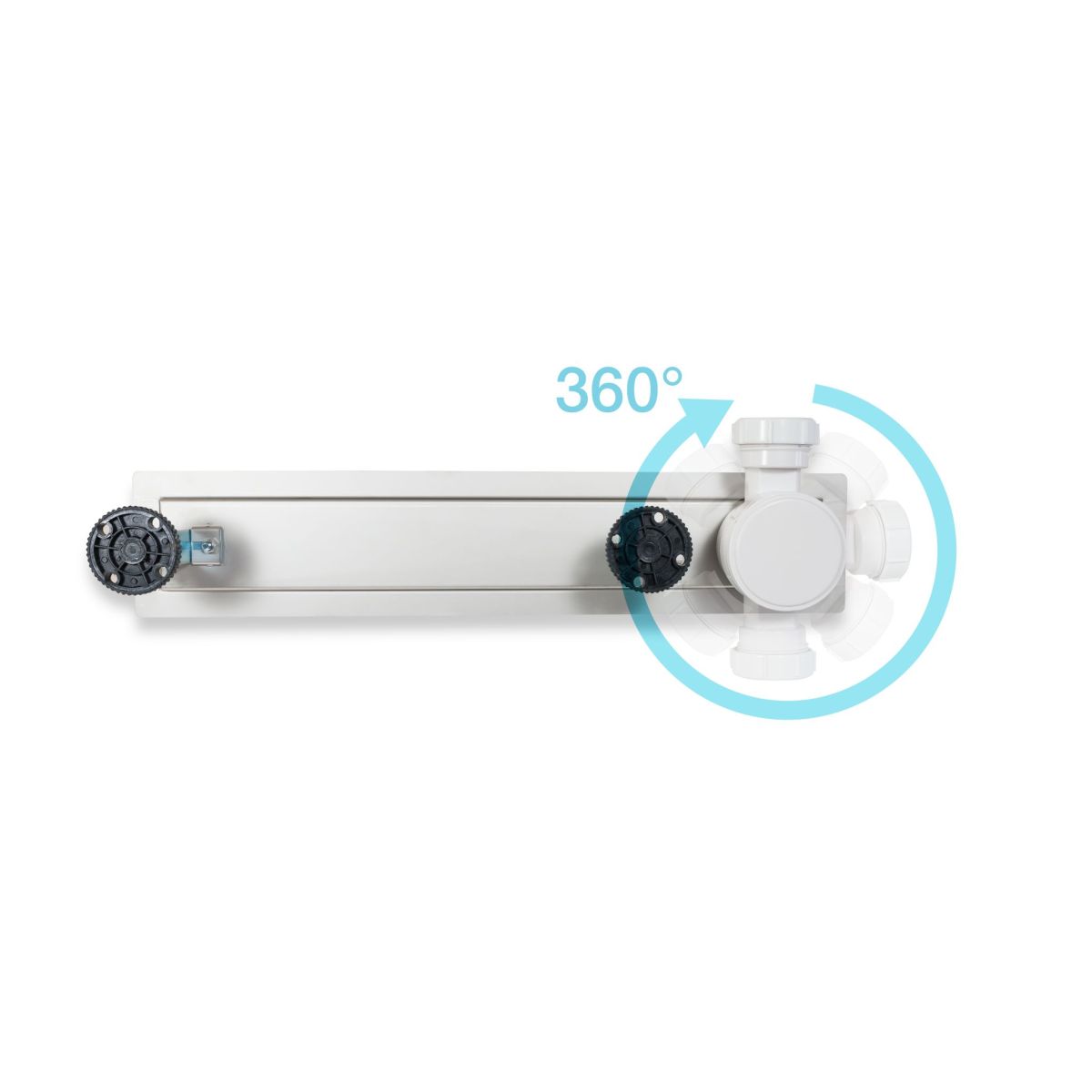 Der Linearablauf SIDE-Drain erleichtert die Montage in Situationen, in denen der Anschluss eines klassischen Linearablaufs aufgrund einer Kollision mehrerer Installationen erschwert ist. Dies wird durch die ungewöhnliche Anordnung des Siphons ermöglicht, der nicht in der Mitte/zentral, sondern seitlich angebracht ist und um 360 Grad beweglich ist.