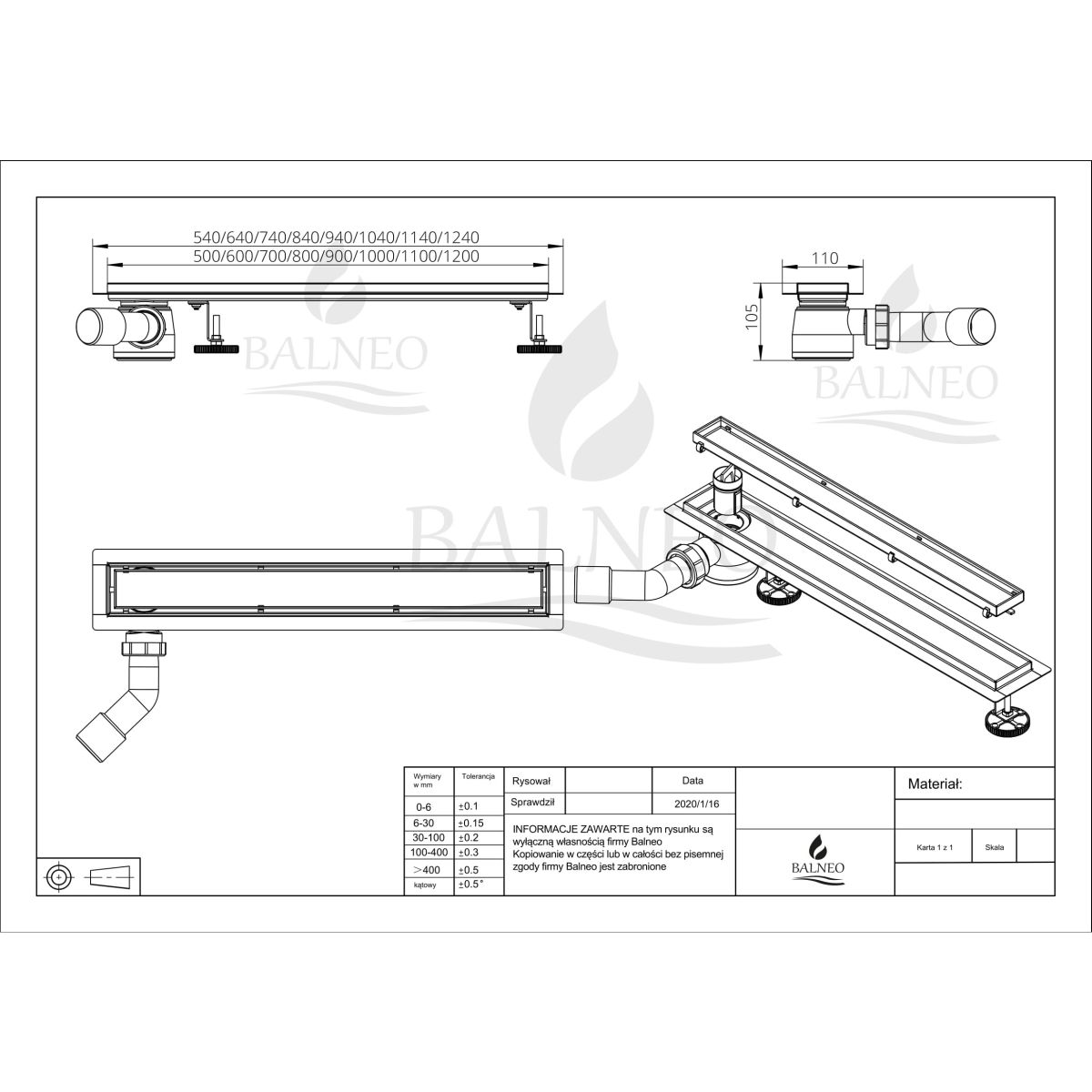 Balneo Side-Drain Duschrinne 90 cm stahl SD900
