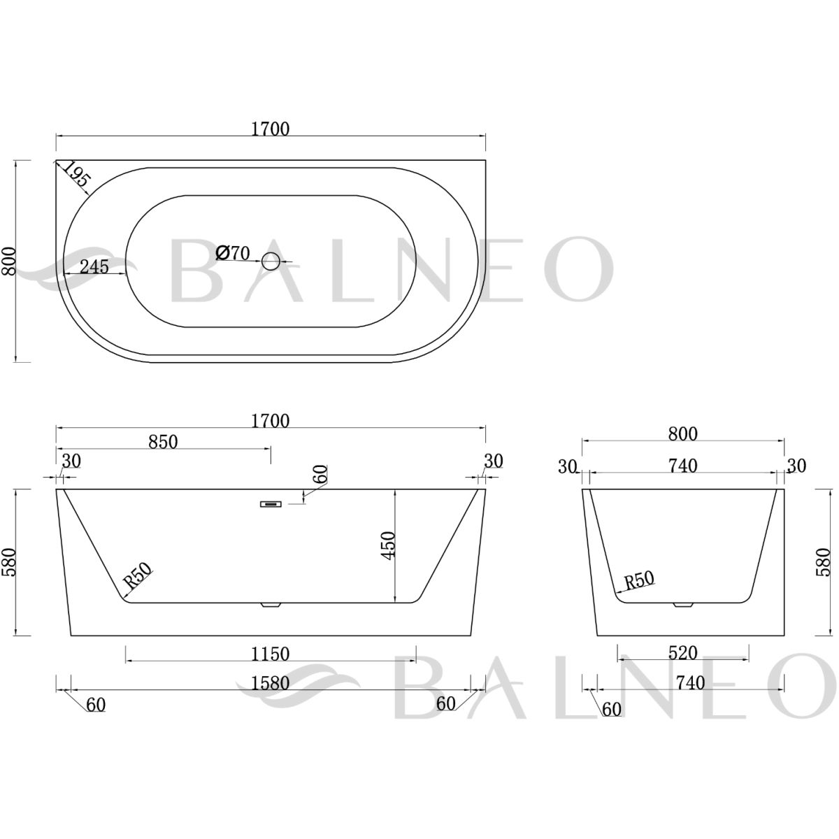 Balneo Viva Wandmontierte Badewanne 170x80 cm oval weiß J0101010102-3