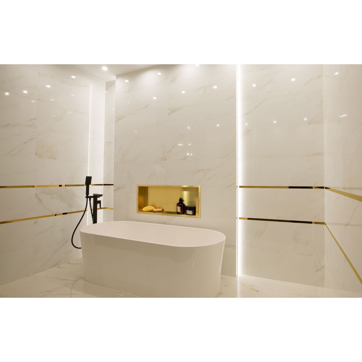 WALL-BOX ONE Gold ist auch eine Alternative zu Nischenregalen aus Gipskartonplatten. Gipskartonplatten sind kein Material, das für die Herstellung von Nischenregalen geeignet ist, insbesondere nicht in Bereichen mit sehr hoher Luftfeuchtigkeit (z. B. Duschkabinen). Regale aus Gipskartonplatten sind nicht wasserdicht, was dazu führen kann, dass Wasser durch auswaschende Fugen in die Wand eindringt. Die Herstellung solcher Regale ist sehr kostspielig, problematisch und arbeitsintensiv.