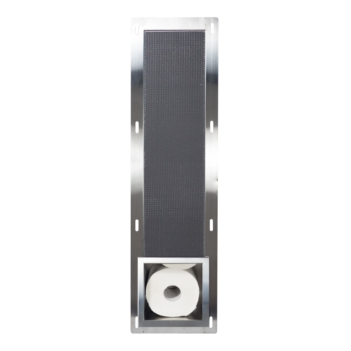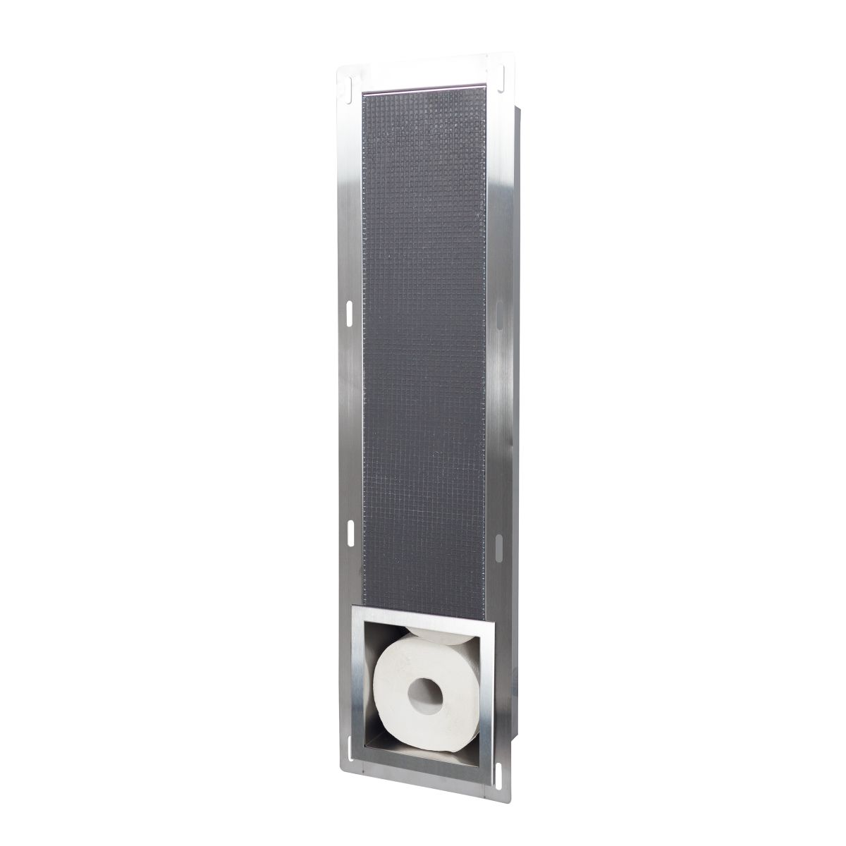 WALL-BOX PAPER 2 ist ein handlicher Toilettenpapierhalter mit einem in der Wand versteckten Fach für den Papiervorrat.