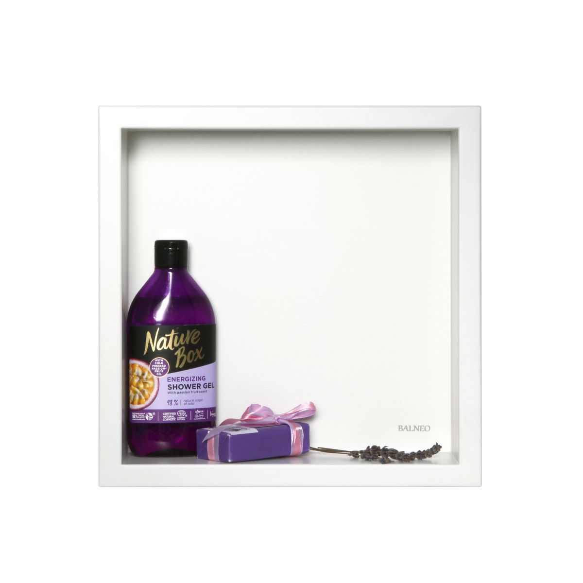 Auf den leicht zugänglichen Regalen können Sie Kosmetika und Parfüms unterbringen, in der Duschkabine hingegen Shampoos, Gels und andere Badeartikel. Die Regale der Serie WALL-BOX ONE können auch zur Raumgestaltung verwendet werden, z. B. im Schlafzimmer anstelle von Nachttischen – für Kleinigkeiten, in der Küche – für Gewürze oder als Nischen für Dekorationselemente im Wohnzimmer.