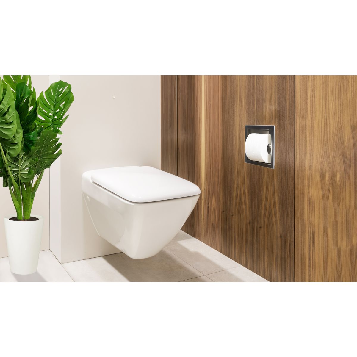 WALL-BOX PAPER 1 ist eine in die Wand einbaubare, einfach und schnell zu montierende Toilettenpapierhalterung.