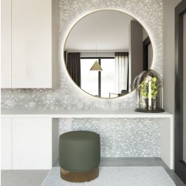 Der Spiegel verleiht dem Raum eine äußerst gemütliche, fast intime Atmosphäre mit einem Hauch von Modernität. Es handelt sich um ein Produkt der Spitzenklasse, das in Polen hergestellt wird. Es vereint Stil und Funktionalität als zusätzliche Beleuchtung. Die Spiegeloberfläche wird von einem minimalistischen Rahmen in vier Farben umgeben, die zur Auswahl stehen: Weiß, Schwarz, Silber und Gold.