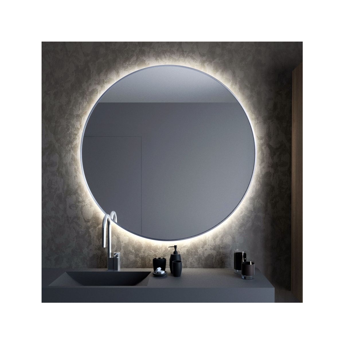 - Der 25 mm dicke Verbundstoffdeckel mit Aufhängung sorgt dafür, dass der Spiegel in einem Abstand zur Wand angebracht ist, der eine perfekte Lichtstreuung gewährleistet