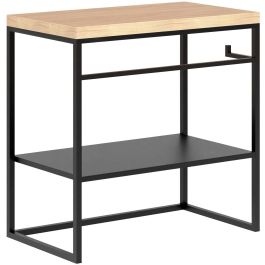 Die Badezimmerkonsole ist eines der beliebtesten Badezimmermöbelstücke. Sie ersetzt perfekt die üblichen Waschbeckenschränke. Modernistisch, aus Stahl und Naturholz gefertigt, für den Einsatz im Badezimmer geeignet. Das Produkt kann als Möbelstück verwendet werden, auf dem ein Waschbecken platziert wird, oder als eigenständiger Teil der Badezimmerausstattung. Die Konsole ist aus Materialien höchster Qualität gefertigt. Sie ist vollständig verschweißt, wodurch sie sich als Möbelstück durch außergewöhnliche Stabilität auszeichnet. Die Konstruktion besteht aus Stahl und ist mit korrosionsbeständigen Lacken lackiert. Die Platte besteht aus Eichenholz und ist entsprechend gegen Feuchtigkeit geschützt. Ein äußerst funktionales Möbelstück, das sich ideal für kleine Badezimmer eignet. Es vereint einen Waschbeckenschrank, einen Handtuchhalter und einen Papierhalter. Das Regal unter der Platte bietet zusätzlichen Stauraum. Der minimalistische, schlichte, fast strenge Stil der Konsole macht das Produkt geeignet für Loft- und moderne Innenräume, dank des natürlichen Holzes auch für rustikale.