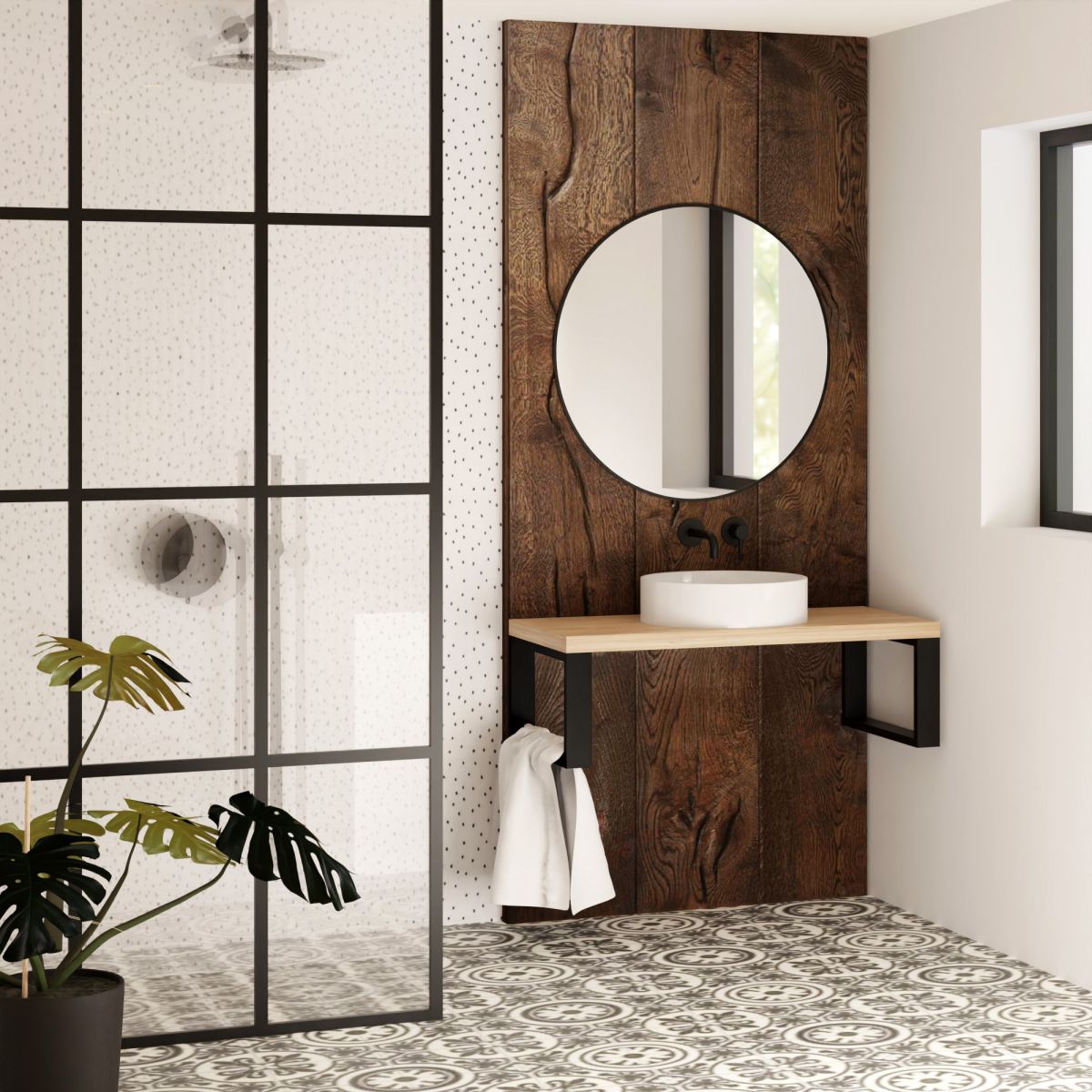 Das hängende Regal unter dem Waschbecken ist eines der besten Badezimmermöbel. Es ersetzt perfekt die üblichen Waschbeckenschränke. Modernistisch, aus Stahl und Naturholz gefertigt, für den Einsatz im Badezimmer geeignet. Das Produkt kann als Möbelstück verwendet werden, auf dem ein Waschbecken oder eine Arbeitsplatte im Badezimmer platziert wird. Das Regal ist aus Materialien höchster Qualität gefertigt. Es ist vollständig verschweißt, wodurch es sich als Möbelstück durch außergewöhnliche Stabilität auszeichnet. Die Konstruktion besteht aus Stahl und ist mit korrosionsbeständigen Lacken lackiert. Die Arbeitsplatte ist aus Eichenholz gefertigt und entsprechend gegen Feuchtigkeit geschützt. Der minimalistische, schlichte, fast strenge Stil der Konsole macht das Produkt geeignet für Loft- und moderne Innenräume, dank des natürlichen Holzes auch für rustikale Einrichtungen.