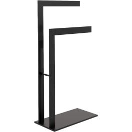 Doppelter Handtuchhalter im Industriestil, hergestellt aus Stahlprofilen. Er ist nicht nur ein praktisches Accessoire, sondern auch ein modisches Element der Inneneinrichtung, das den aktuellen Trends entspricht. Das Produkt ist vollständig für den Einsatz im Badezimmer geeignet, da der pulverbeschichtete Stahl feuchtigkeitsbeständig ist. Es steht auf einem soliden, stabilen rechteckigen Sockel. Es wurde für Liebhaber des minimalistischen, schlichten Stils entworfen. Das Produkt ist aus dickem Stahl gefertigt.