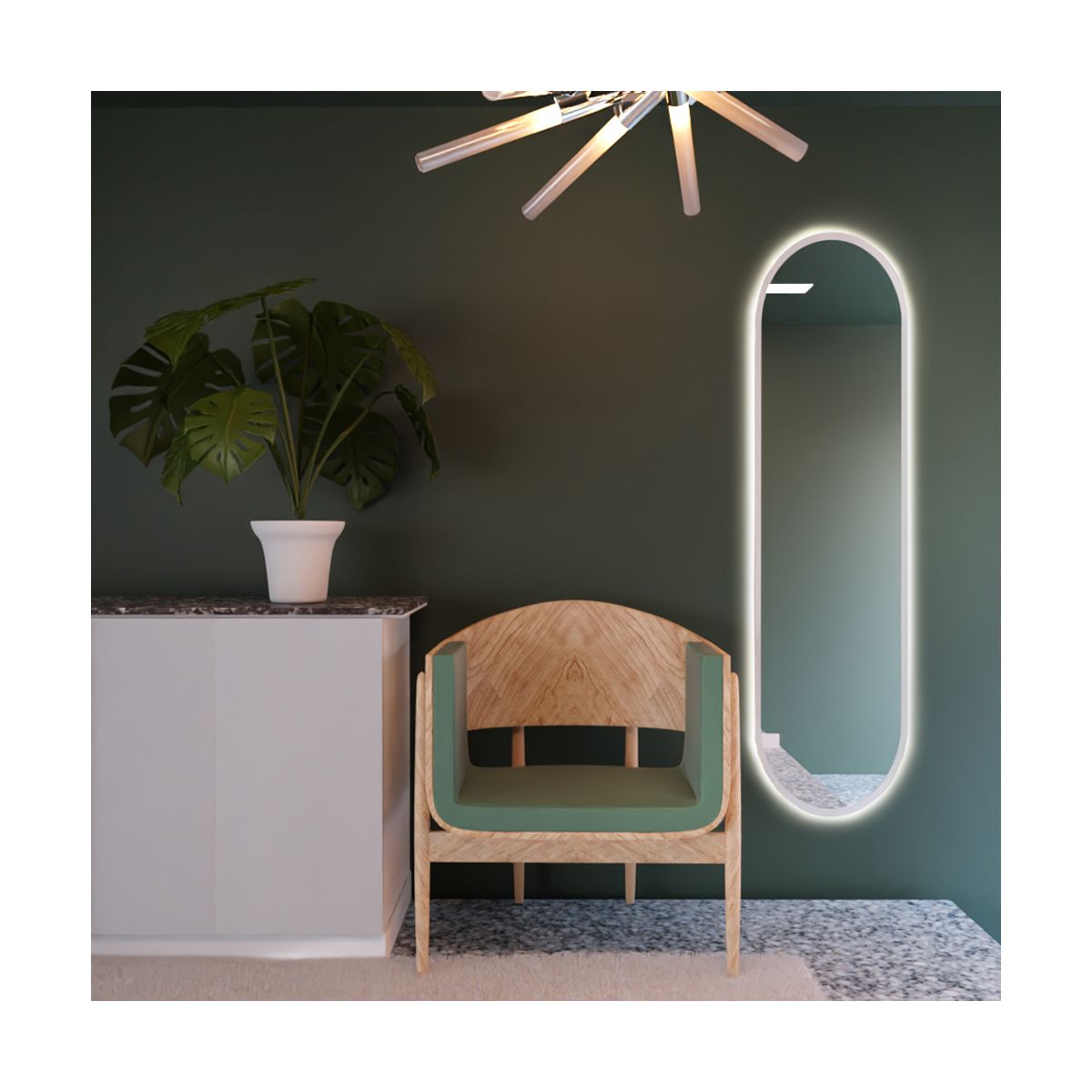 Der moderne ovale Spiegel aus der Kollektion Tiny Border eignet sich perfekt als Badezimmerspiegel oder Flurspiegel. Durch seine schlichte und elegante Form verleiht der Spiegel dem Raum ein frisches und zugleich etwas geheimnisvolles Aussehen. Der Spiegel ist ideal für kleine Räume, die er auch durch das Licht optisch vergrößert.