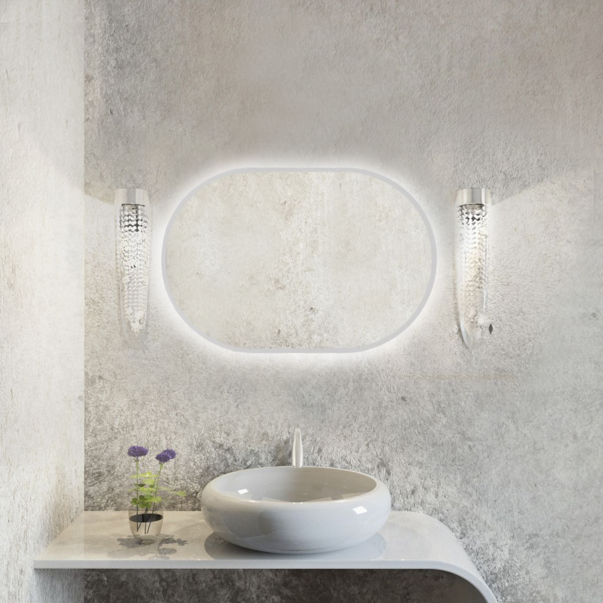 Der moderne ovale Spiegel aus der Kollektion Tiny Border eignet sich perfekt als Badezimmerspiegel oder Flurspiegel. Durch seine schlichte und elegante Form verleiht der Spiegel dem Raum ein frisches und zugleich etwas geheimnisvolles Aussehen. Der Spiegel ist ideal für kleine Räume, die er auch durch das Licht optisch vergrößert.