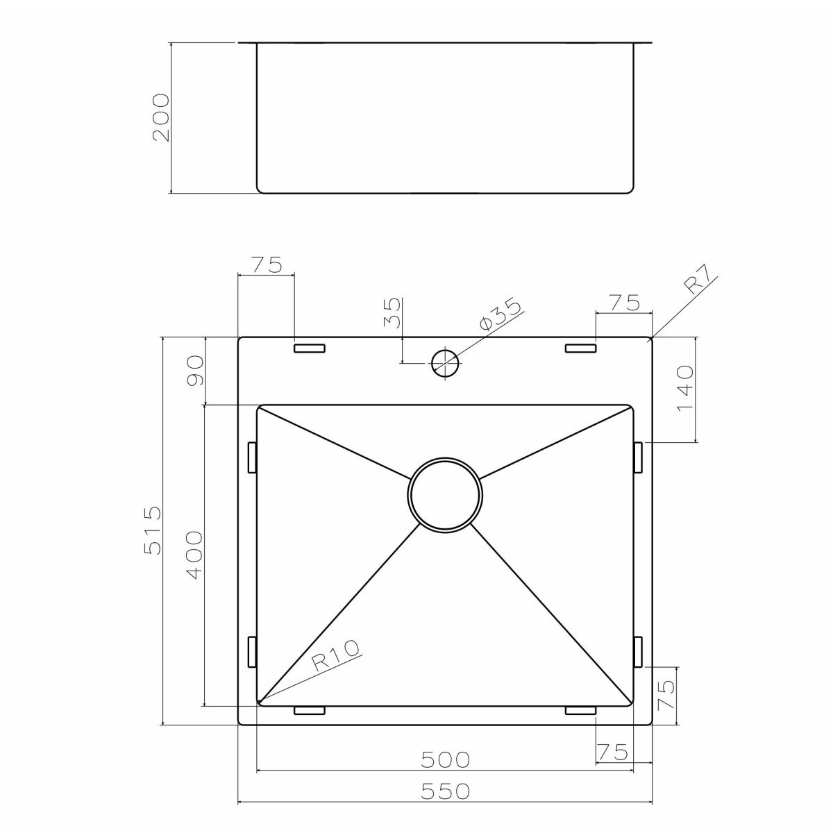 Berg Acero Stahlspüle 55x51.5 cm stahl ACEROXL