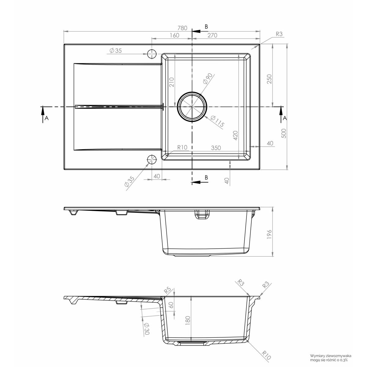 Spülbecken BERG HOBART BRQ1911A 1,0 MOC BAZALT