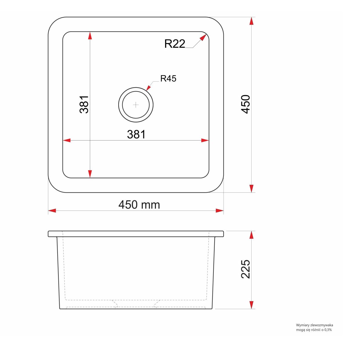 Berg Klio keramikspüle 45x45 cm schwarz BRK19CM