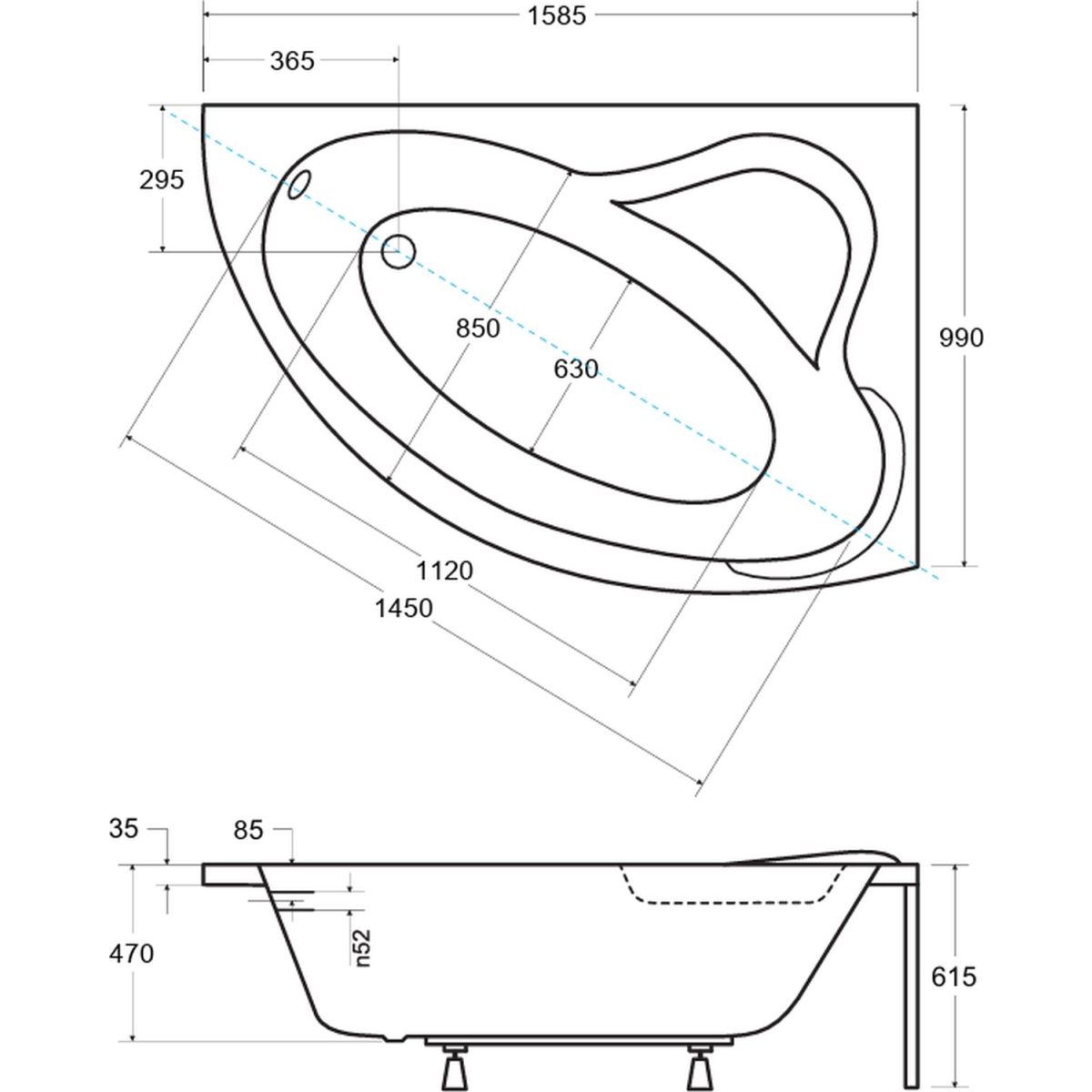 - längere Seite: 158,5 cm