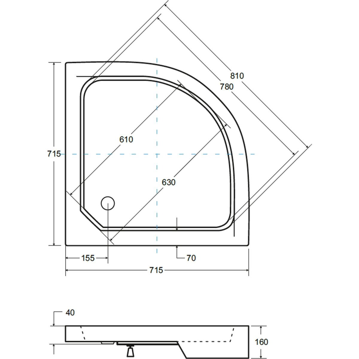 Besco Alex Halbrunde Duschwanne 70x70 cm weiß #BAA-70