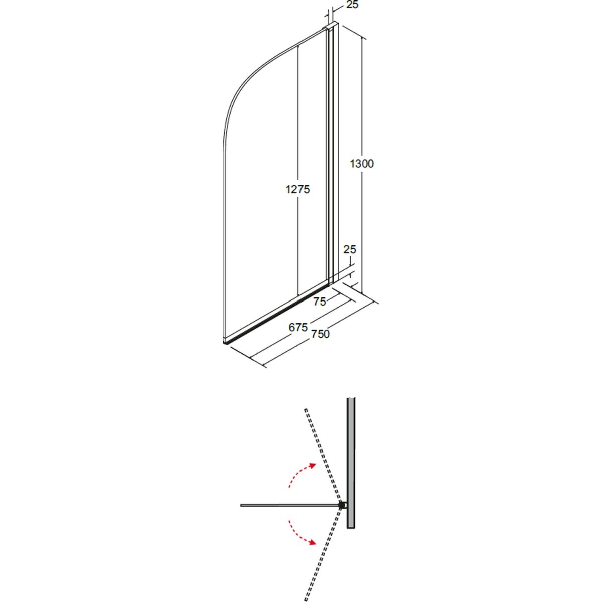 Besco Ambition Badewannenabtrennung 75 cm einteilig chrom Glanz/durchsichtiges Glas PA-1S-CZ
