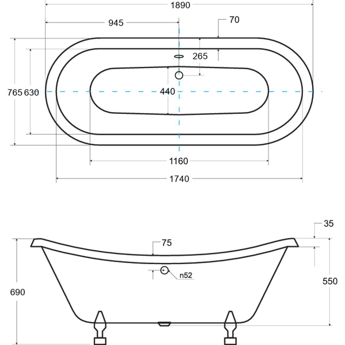 Besco Amelia Freistehende Badewanne 189x76.5 cm oval weiß #WKA-190W+ZL