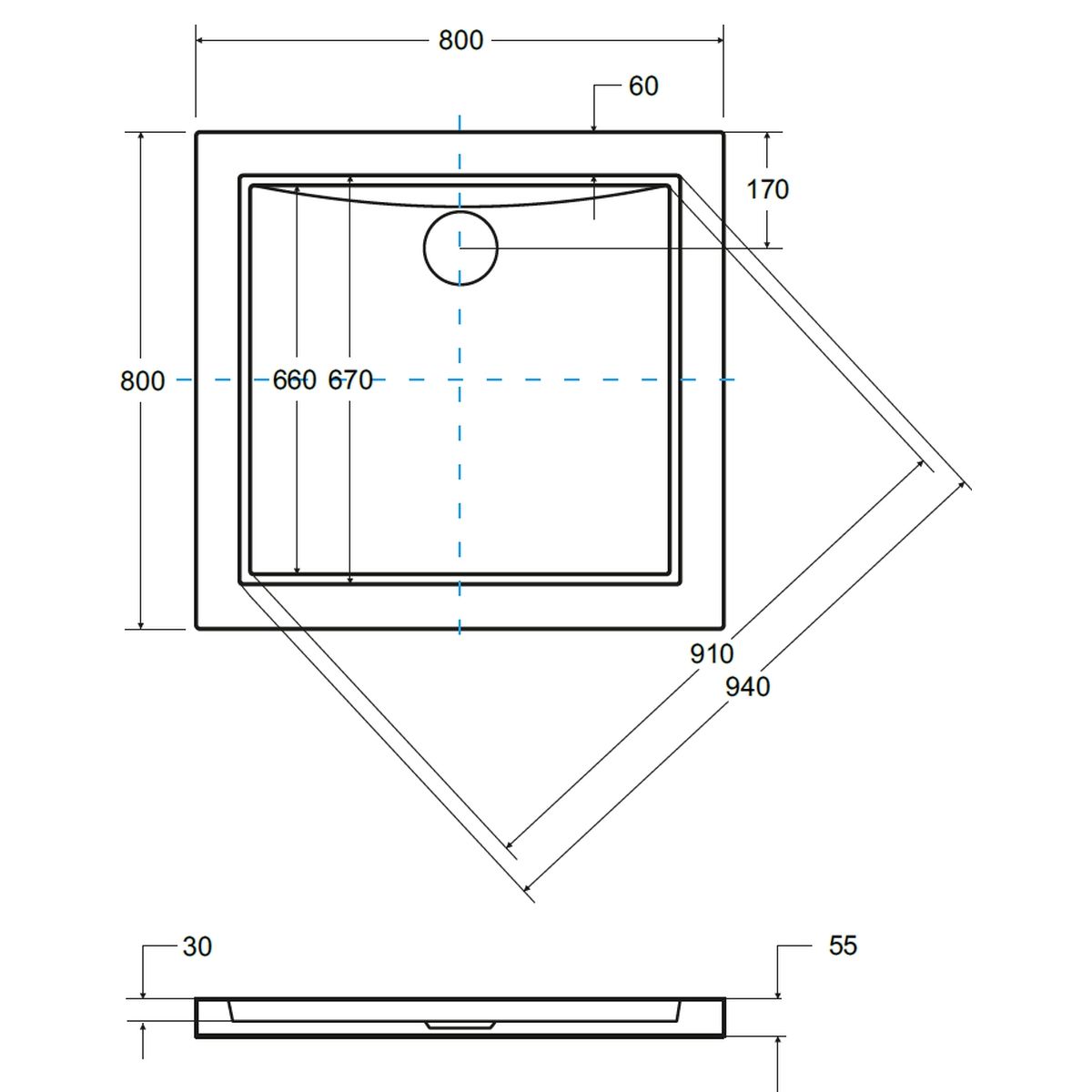 Besco Aquarius Slimline Quadratische Duschwanne 80x80 cm weiß BAA-80-K