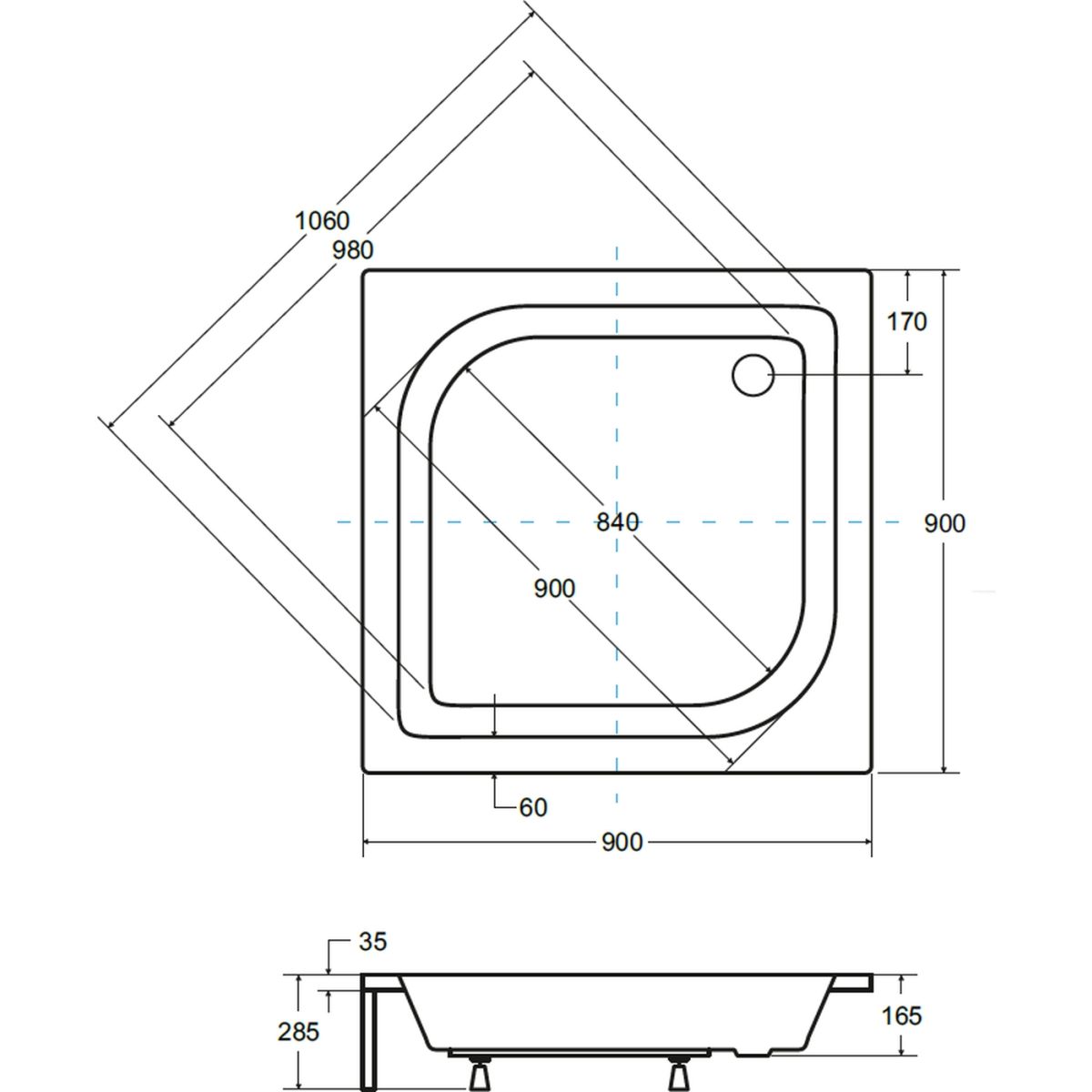Besco Ares Quadratische Duschwanne 90x90 cm weiß #BAA-90-KW