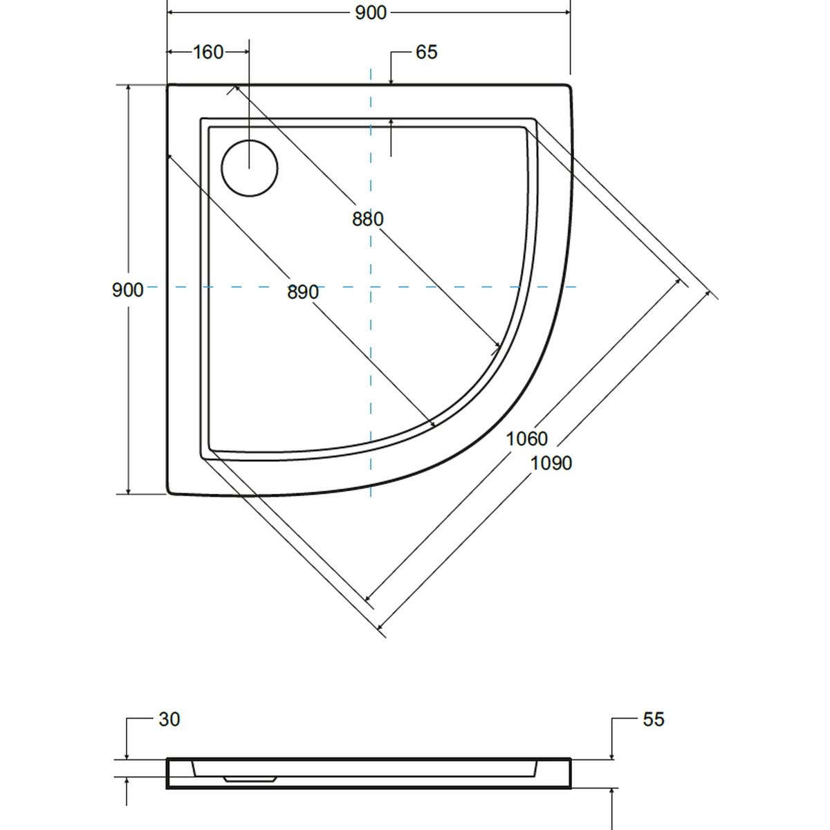 Besco Aron Slimline Halbrunde Duschwanne 90x90 cm weiß BAA-90-NR