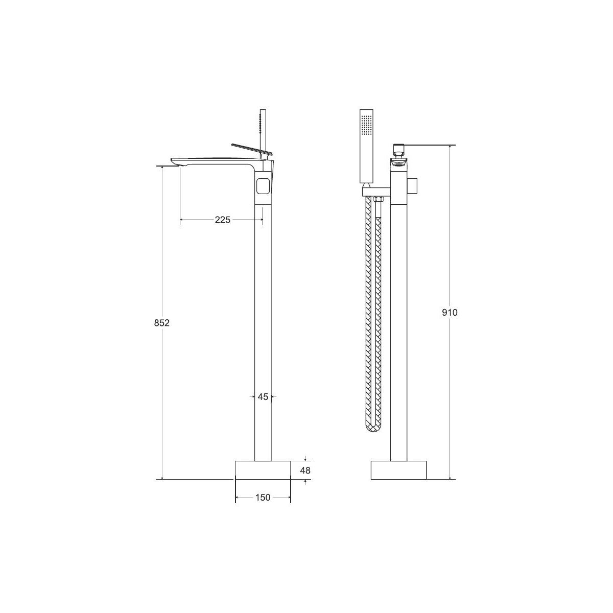 - Gesamthöhe der Armatur 98 cm, Höhe des Wasserauslaufs 85,2 cm