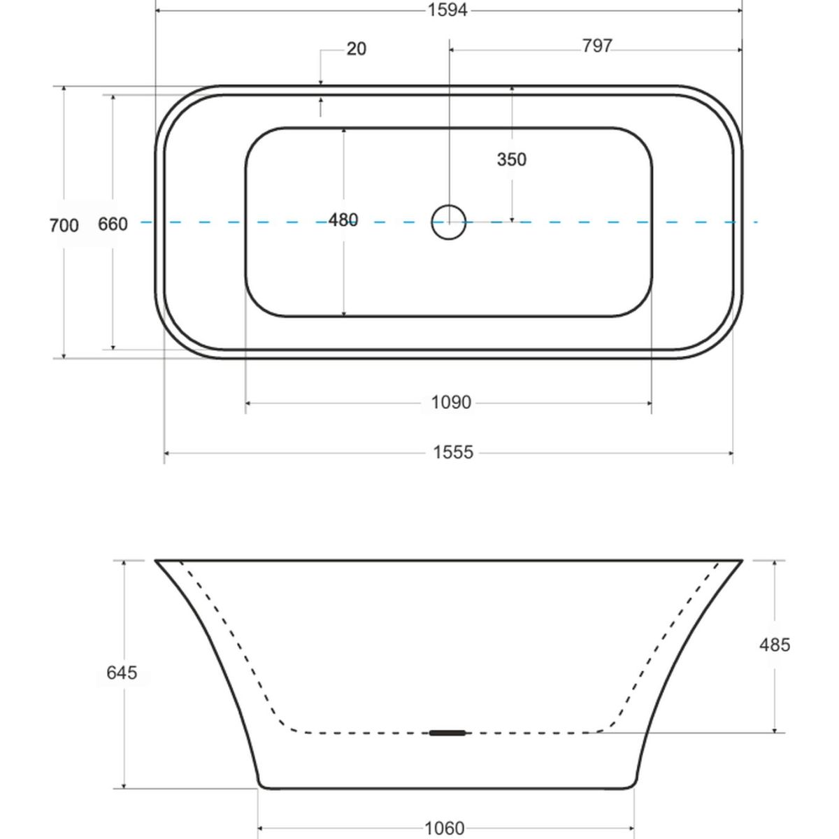 - Badewanne aus Mineral DuraBe (eine Mischung aus natürlichen Steinen wie Marmor, Granit und Harz)