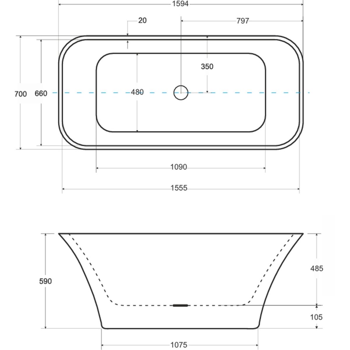 Besco Assos S-Line Freistehende Badewanne 159.4x70 cm rechteckig weiß #WMD-160-AL