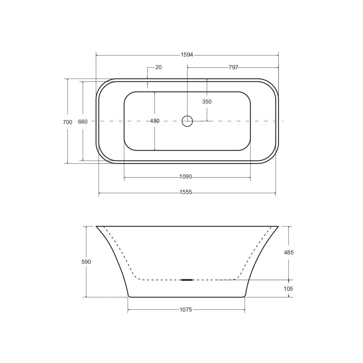 Besco Assos S-Line Freistehende Badewanne 160x70 cm rechteckig weiß #WMMB-160ASB