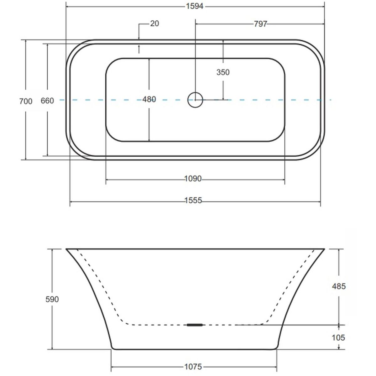 Besco Assos S-Line Freistehende Badewanne 160x70 cm rechteckig zweifarbig #WMD-160-ALZ