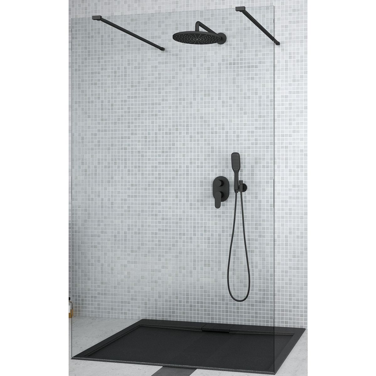 Besco Aveo Duschwand 110 cm schwarz Matte/durchsichtiges Glas ADB-110-195C