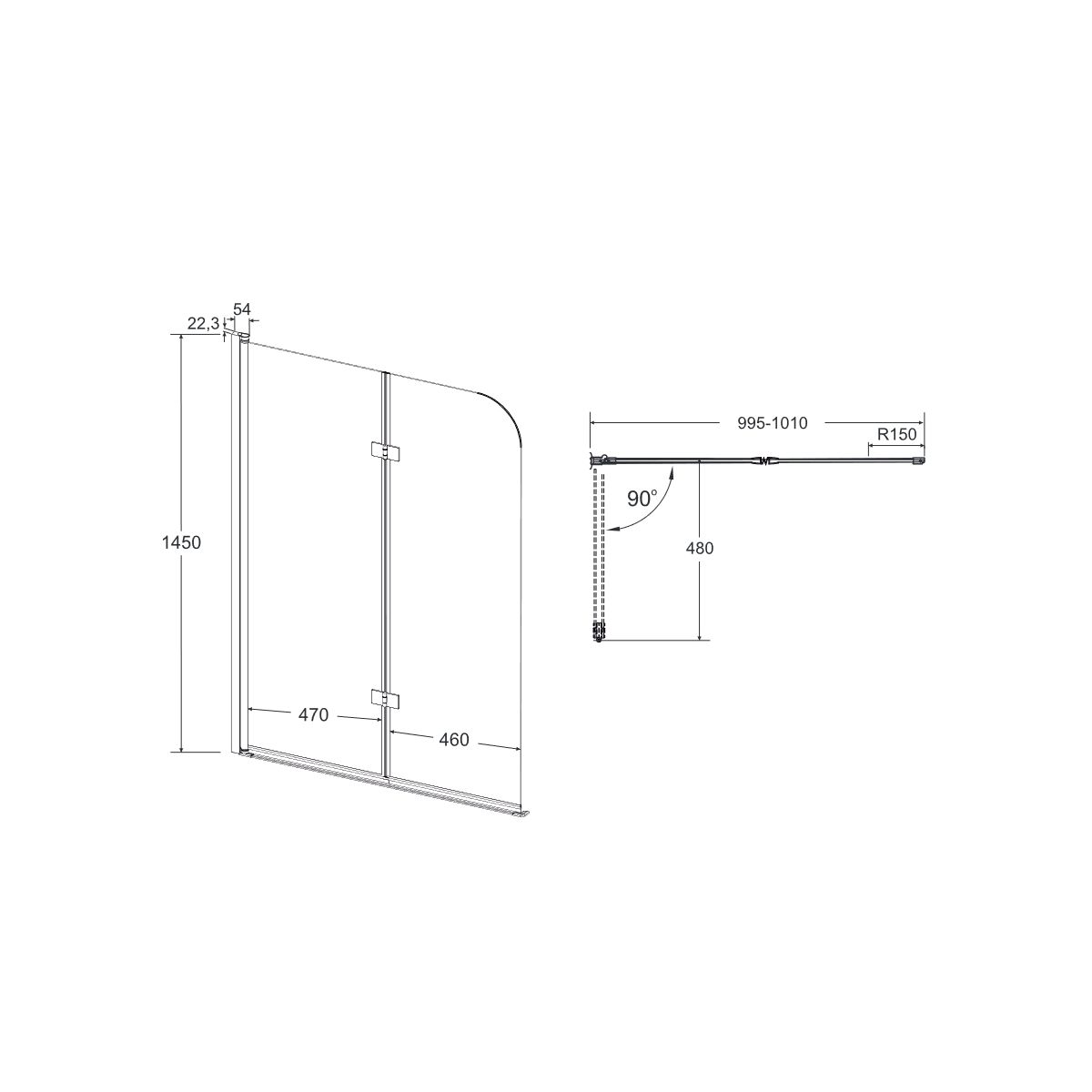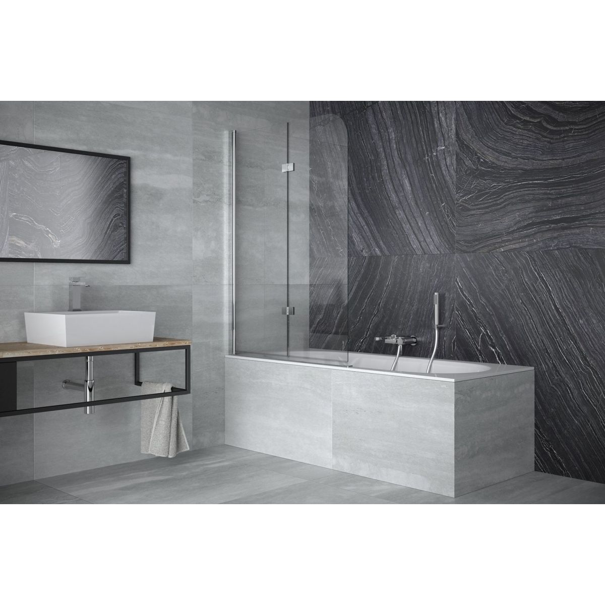 Besco Avigo Badewannenabtrennung 100 cm zweigeteilt chrom Glanz/durchsichtiges Glas PNA-2S