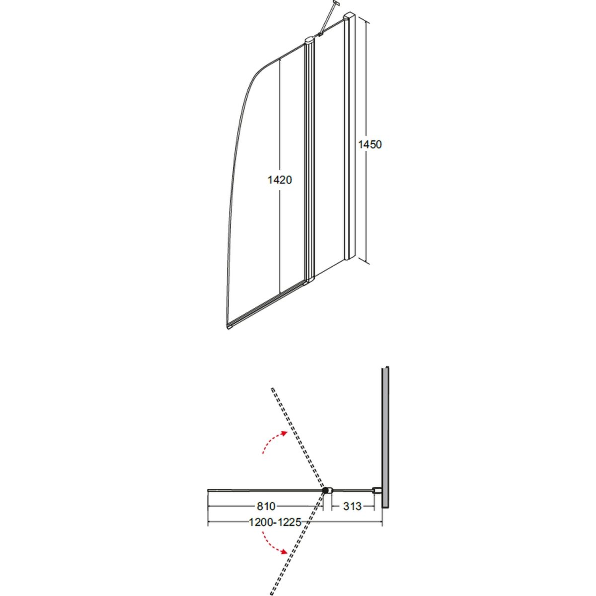 Besco Avis Badewannenabtrennung 120 cm zweigeteilt chrom Glanz/durchsichtiges Glas PAV-2S