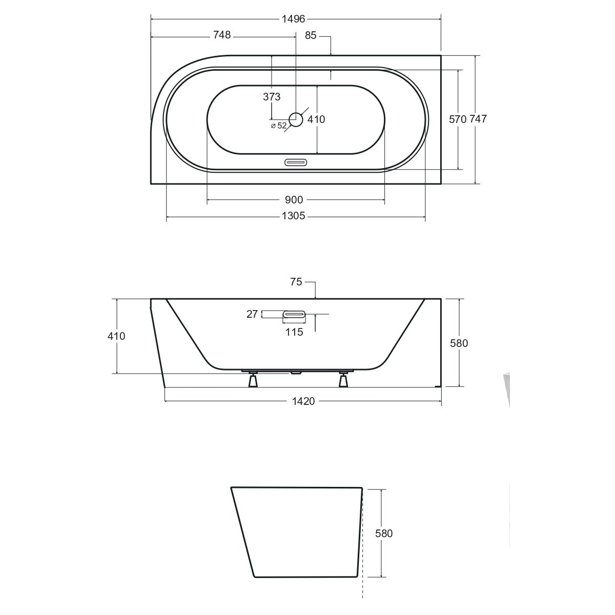 Besco Avita A-Line Wandmontierte Badewanne 149.6x74.7 cm rechteckig zweifarbig #WAA-15ABLBS