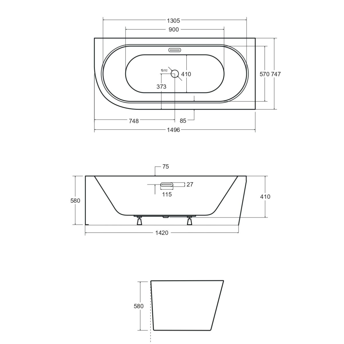 Besco Avita A-Line Wandmontierte Badewanne 149.6x74.7 cm rechteckig zweifarbig #WAA-15ABPCS
