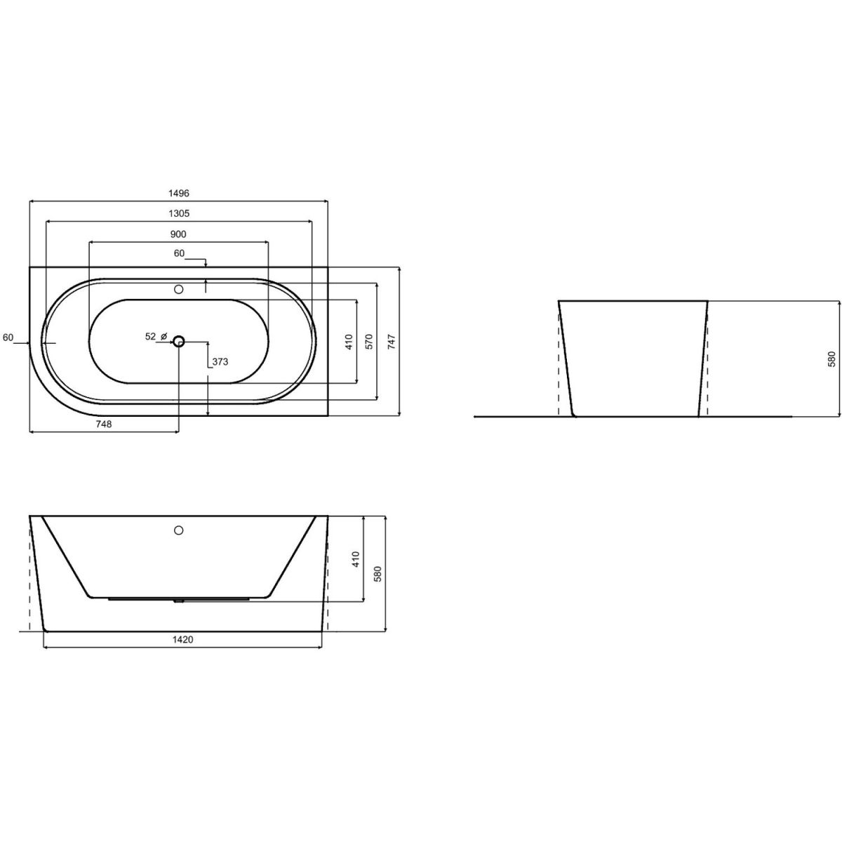Besco Avita A-Line Wandmontierte Badewanne 150x75 cm rechteckig weiß #WAA-150APN