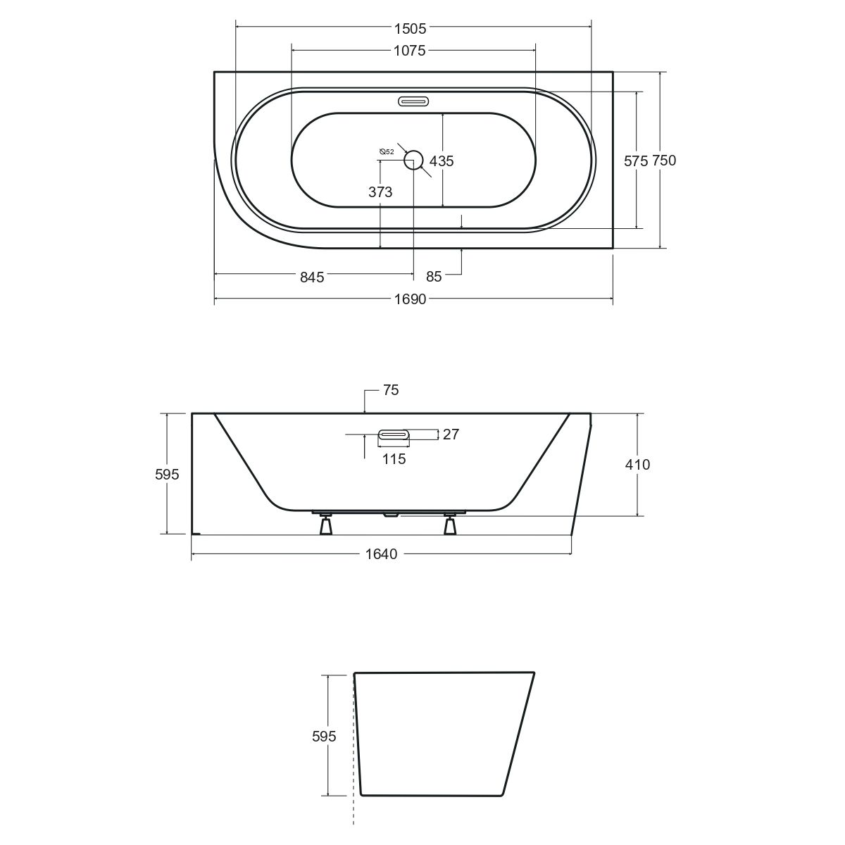Besco Avita A-Line Wandmontierte Badewanne 169x75 cm rechteckig zweifarbig #WAA-17ABPCS