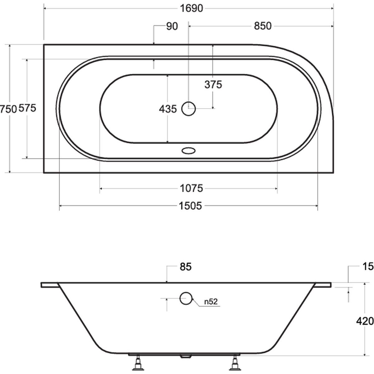 Besco Avita Schlanke Eckbadewanne 169x75 cm rechtsseitig weiß #WAV-170-NPS