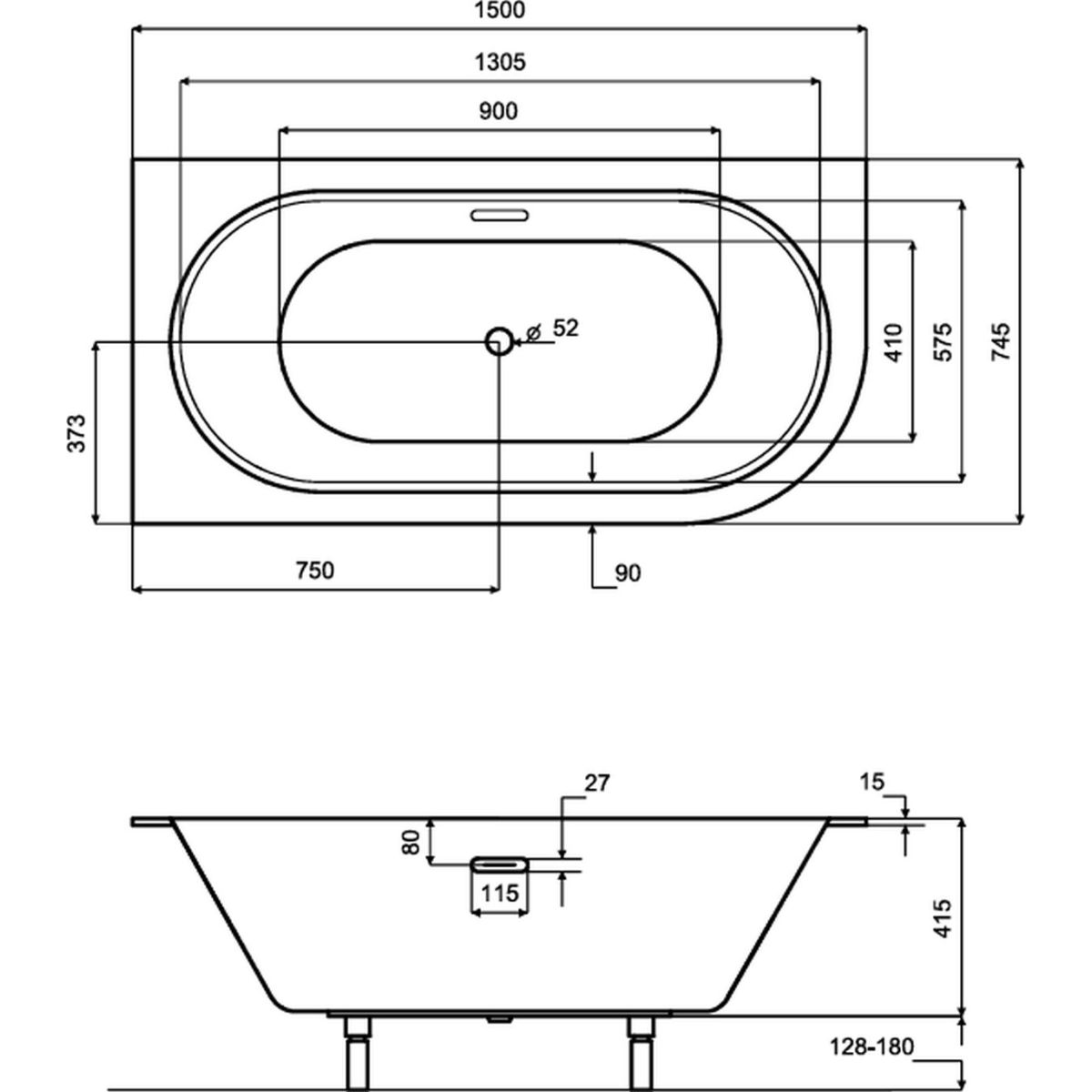 - Badewanne komplett mit Gestell und Chrom-Siphon