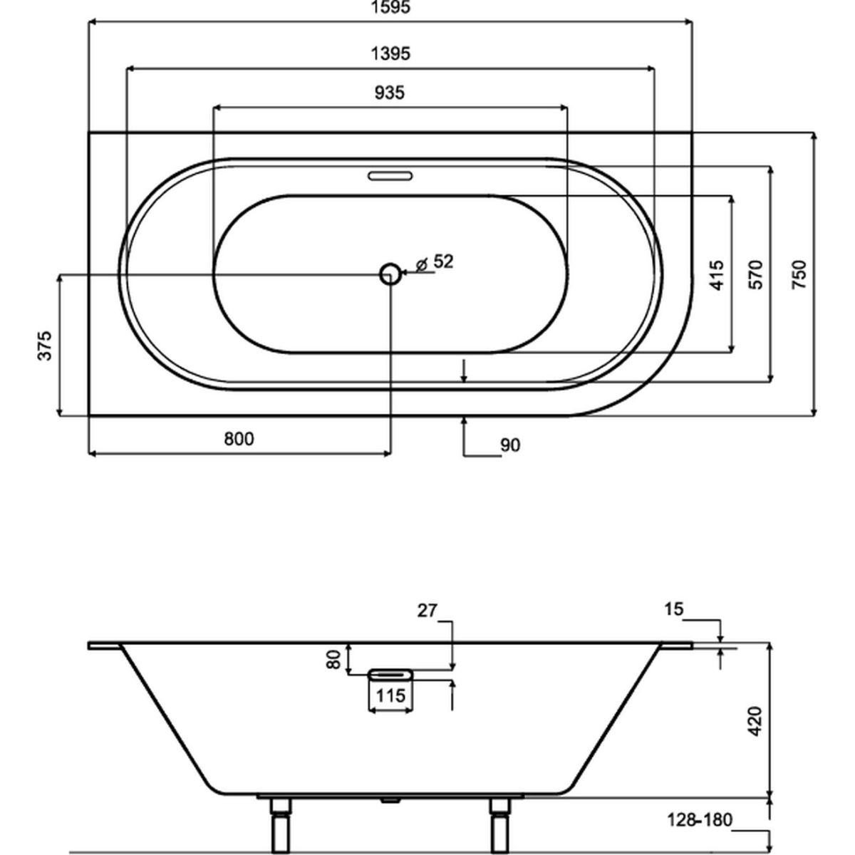 Besco Avita Slim+ Schlanke Eckbadewanne 159.5x75 cm linksseitig weiß #WAV-160-NLP