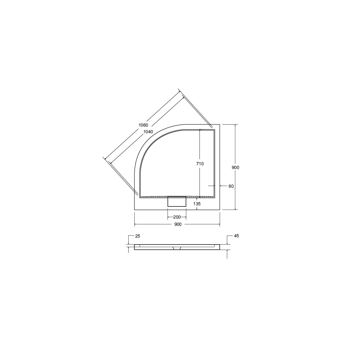 Besco Axim Ultraslim Halbrunde Duschwanne 90x90 cm weiß #BAX-90-NR