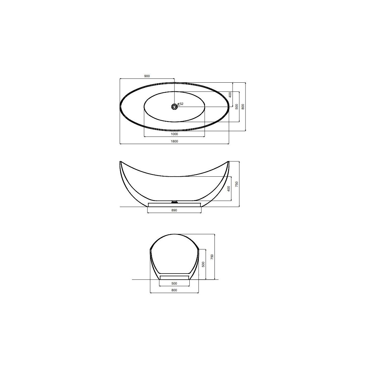 Besco Axya Freistehende Badewanne 180x80 cm oval #WAA-180-BWC