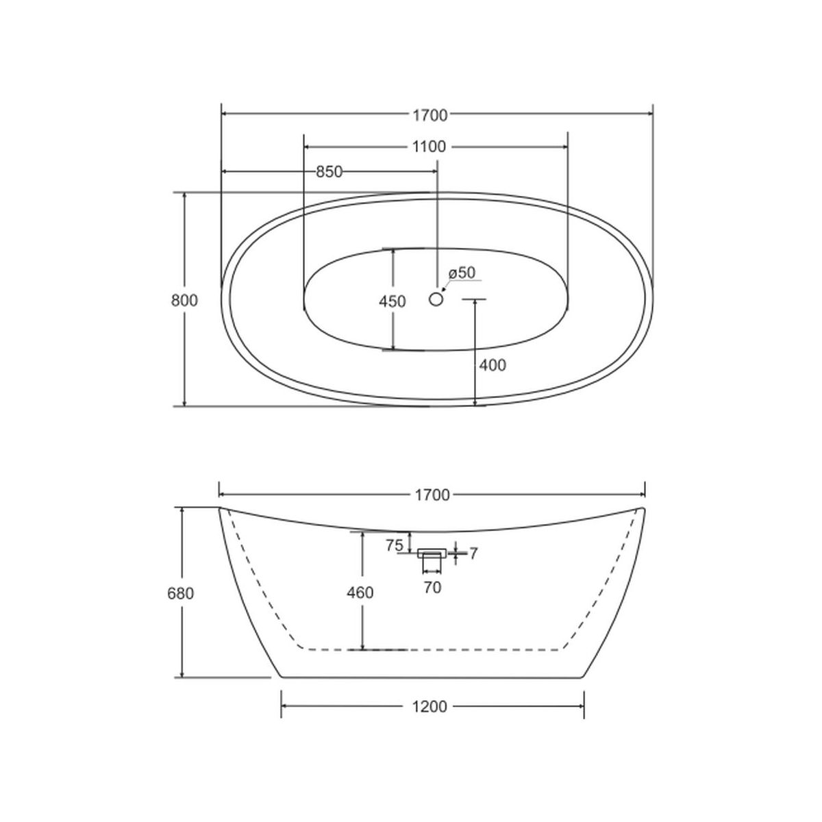 Besco Ayla Freistehende Badewanne 170x80 cm oval weiß #WAS-170-AZL
