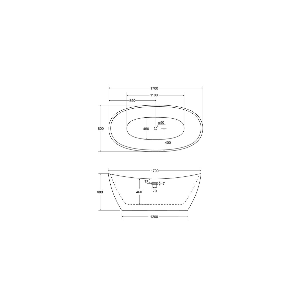 Besco Ayla Freistehende Badewanne 170x80 cm oval zweifarbig #WAS-170ABBI