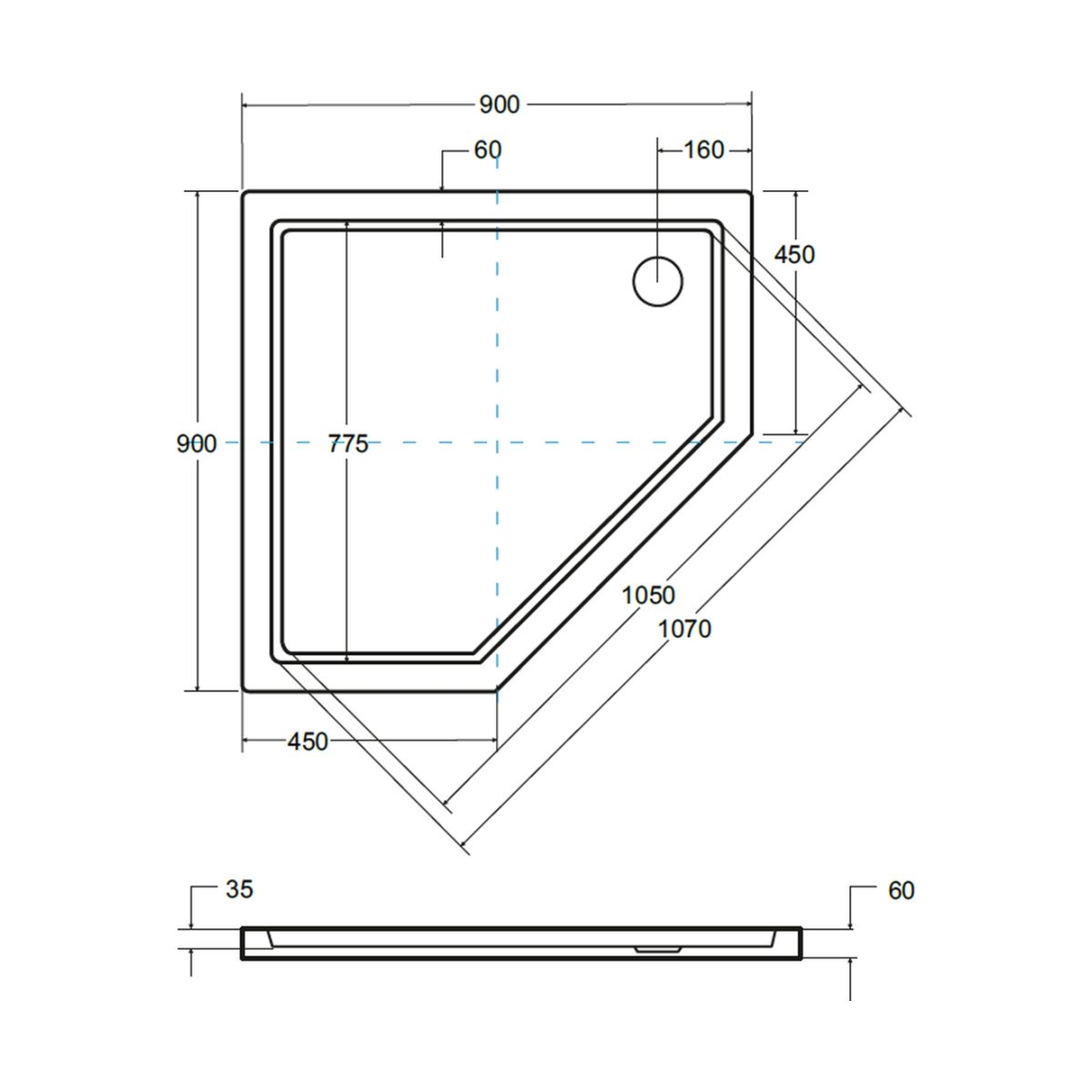- Fünfeckige Duschwanne