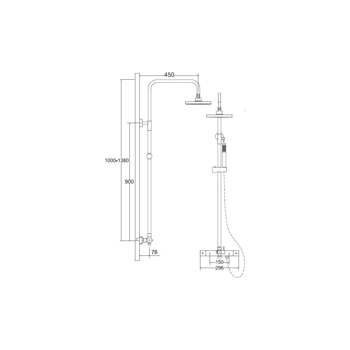 Lieferumfang: Batterie mit Schalter, Duschkopf, Duschkopf, Duschschlauch, Duschstange