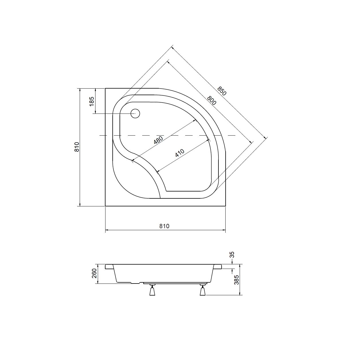 Besco Diper Halbrunde Duschwanne 80x80 cm weiß #BAD-80-NK
