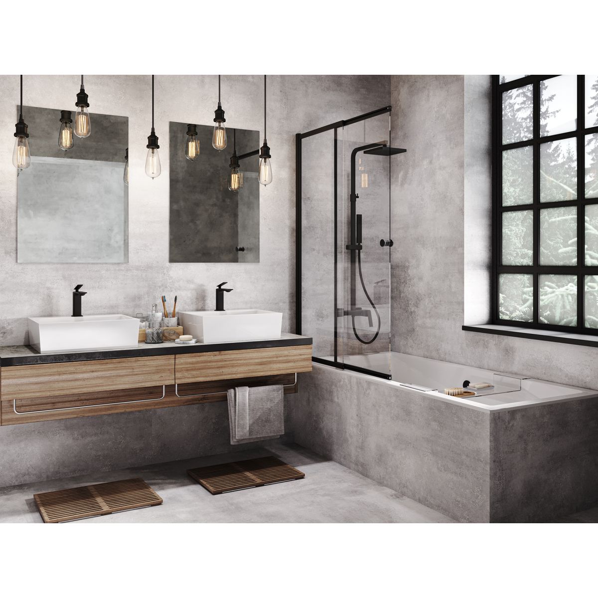 Besco Easy Slide Black Badewannenabtrennung 100 cm zweigeteilt schwarz Matte/durchsichtiges Glas PESB-2S