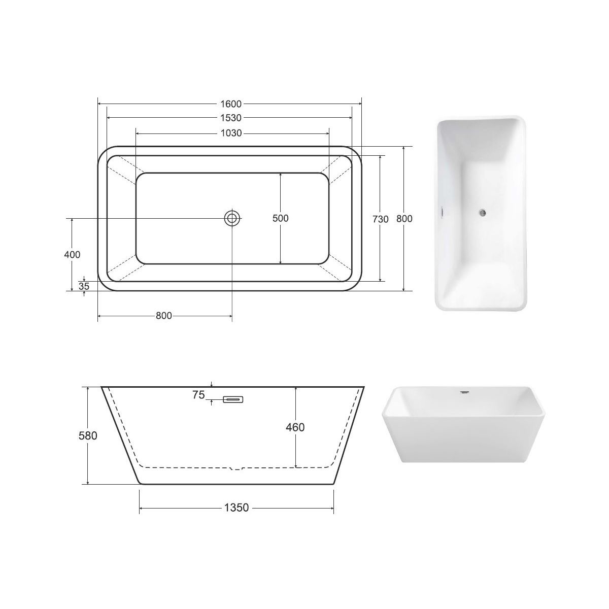 Besco Evita Freistehende Badewanne 160x80 cm oval weiß #WAS-160-ECZ