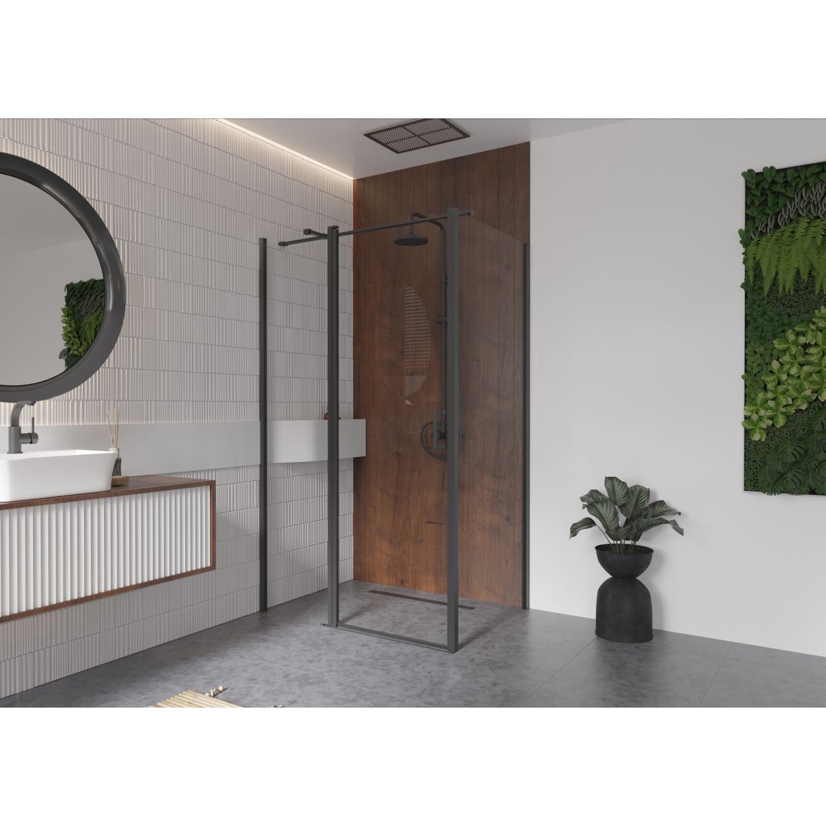 Besco Exo-CH Black Duschwand 80 cm schwarz Matte/durchsichtiges Glas PCH-8B-190C