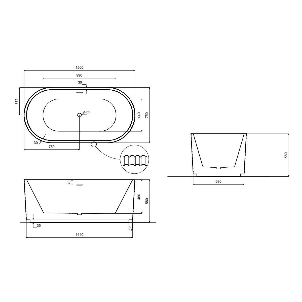 Besco Giuliana Freistehende Badewanne 150x75 cm oval weiß #WAS-150-GLB